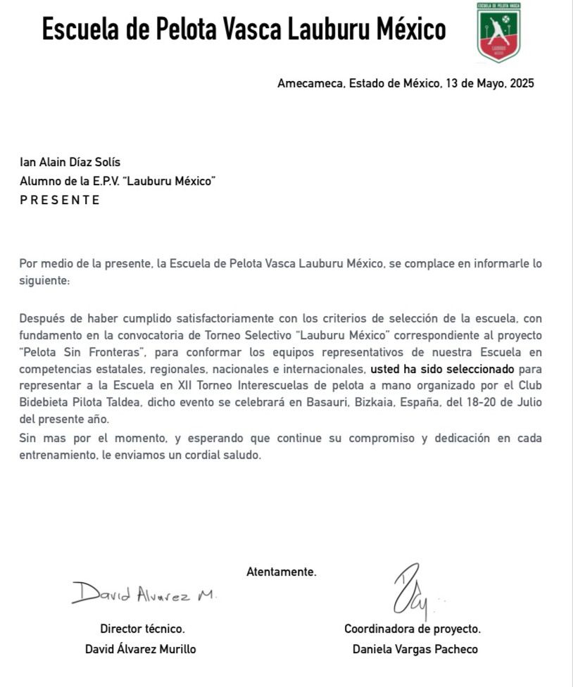 Alain Díaz Solís, de 9 años de edad, deportista de varias discplinas desde muy pequeño, colgó los zapatos de futbol soccer para probar suerte en una disciplina poco conocida en México, la pelota vasca y después de año y medio y varios campeonatos ganados está con pie para viajar a España a un torneo internacional.
