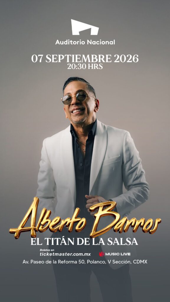 La Ciudad de México volverá a estremecerse con el poder de los metales y el pulso contagioso de la salsa cuando el maestro colombiano Alberto Barros se presente el próximo lunes 7 de septiembre a las 20:30 horas en el Auditorio Nacional, en un concierto que promete convertirse en una de las grandes celebraciones tropicales del año. El espectáculo, promovido por Music Live, una de las promotoras más sólidas y respetadas de la industria del entretenimiento en México, reunirá en un mismo escenario los grandes éxitos de una de las figuras más influyentes de la música latina. Los boletos ya se encuentran disponibles a través del sistema Ticketmaster y en las taquillas del inmueble.