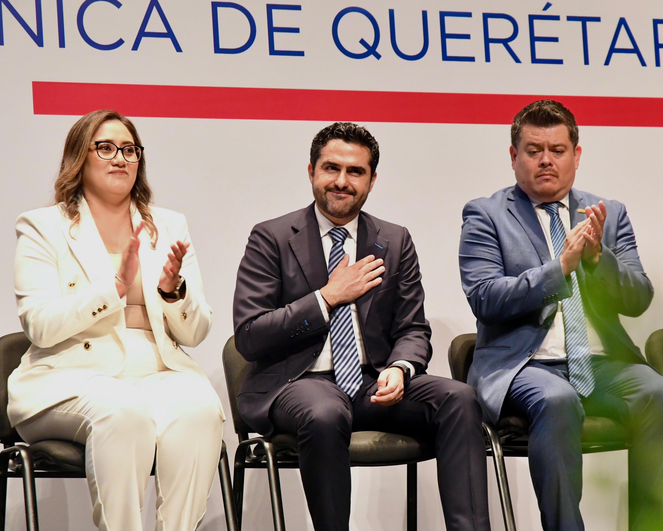 En compañía de la Rectora de la Politécnica de Querétaro, Diana Pérez Mejía, el Senador por Querétaro llamó a las y los egresados a disfrutar su logro, pero también a que sigan poniéndose metas altas para seguir desarrollándose y con ello, impulsar también a Querétaro.