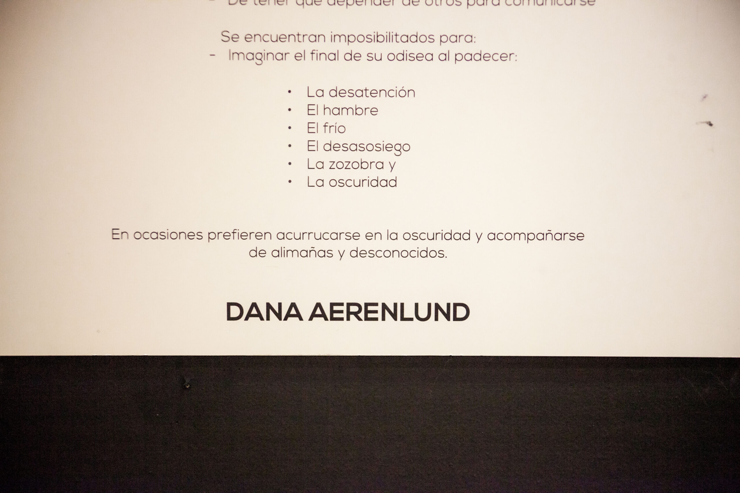 Dana Aerenlund precisó que busca generar conciencia, empatía y reflexión sobre la migración, sus efectos en las personas y las comunidades. Estas obras exploran la relación entre la identidad y el lugar de origen, reflejan la experiencia de dejar atrás lo conocido y adaptarse a un nuevo entorno, al capturar la nostalgia y el recuerdo; nos muestran la capacidad de las personas para superar obstáculos y encontrar esperanza en situaciones difíciles.