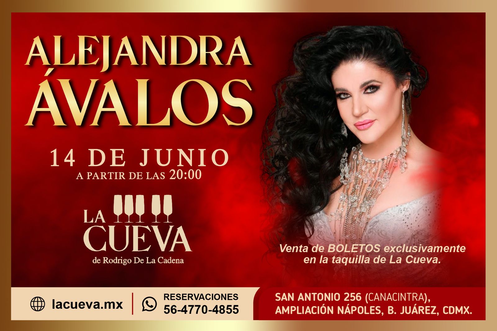 En una velada que promete ser inolvidable para los amantes de la música romántica, la reconocida cantante mexicana Alejandra Ávalos regresará a los escenarios de la capital con una presentación íntima y cargada de emoción en La Cueva de Rodrigo de la Cadena, el próximo viernes 14 de junio a partir de las 20:00 horas. Este esperado concierto se celebrará en uno de los espacios más emblemáticos de la escena musical bohemia de la Ciudad de México, donde la artista compartirá no solo sus grandes clásicos, sino también su más reciente propuesta musical, reafirmando su lugar como una de las voces más versátiles y apasionadas del país. Los boletos se encuentran disponibles a través del sitio oficial www.lacueva.mx, y también es posible realizar reservaciones directas vía WhatsApp al número 5647704855.