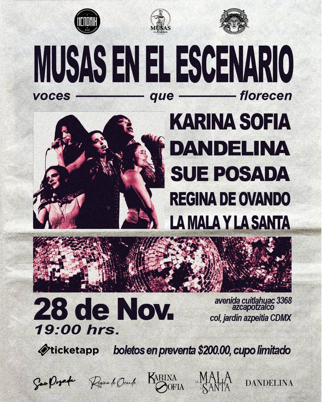 El próximo 28 de noviembre, el Foro Hendrix abrirá sus puertas a una noche creada para florecer. Bajo el nombre “Musas en el Escenario”, la velada se prepara para convertirse en un jardín sonoro donde cinco proyectos femeninos —cada uno con su identidad, su fuerza y su propia forma de alumbrar el mundo— compartirán un mismo territorio emocional: el del arte hecho desde la entraña. En un tiempo donde las voces de las mujeres resuenan con más claridad y urgencia que nunca, esta reunión artística propone algo más que un simple concierto: es un manifiesto musical sobre lo que significa crear, sentir y expresarse en libertad. Boletos a la venta en Ticketapp a aun costo de $200.00.